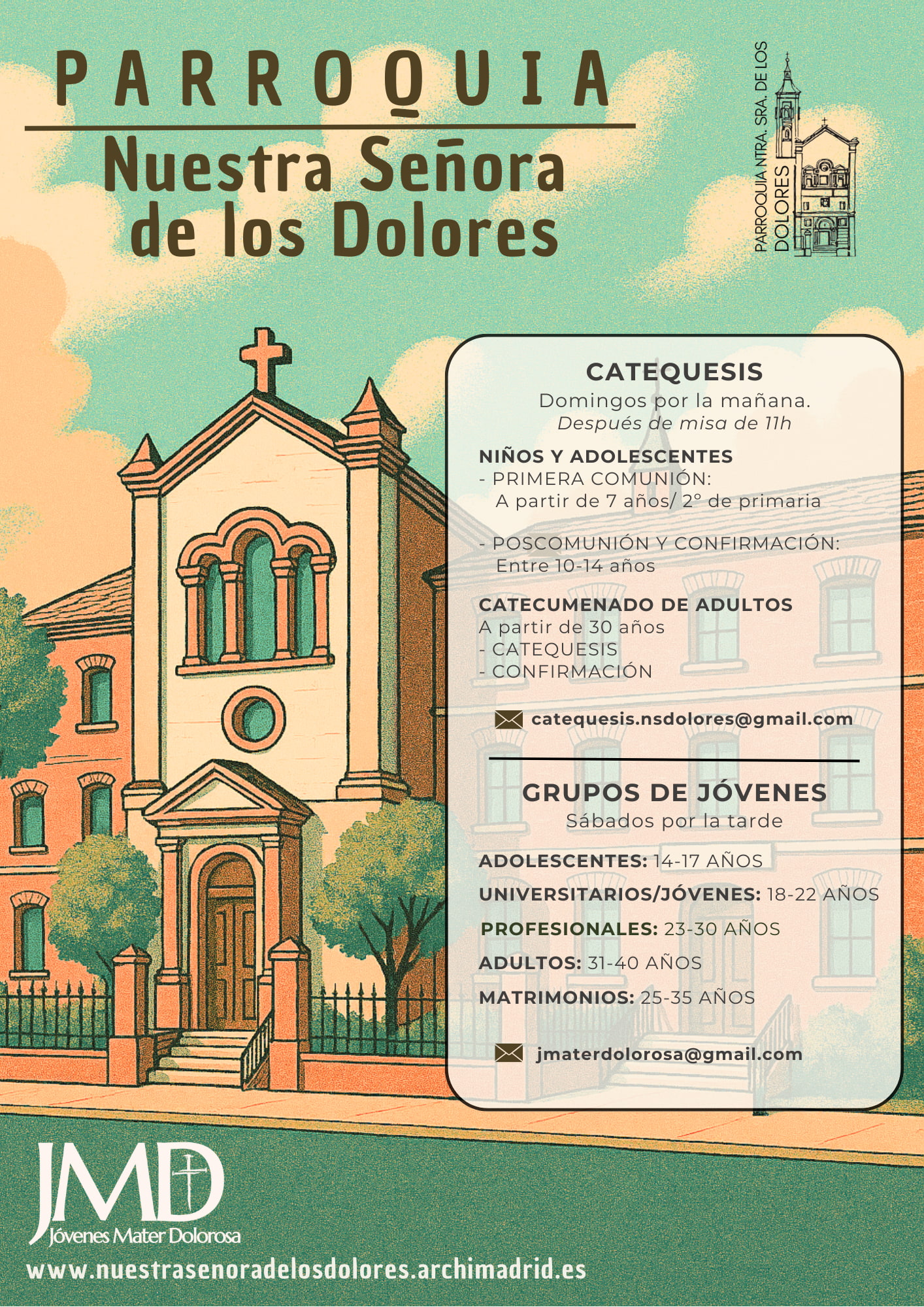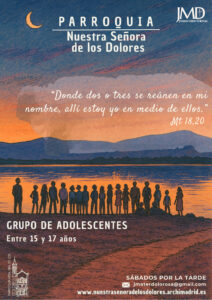 Para este curso 2024-25, la parroquia ofrece los grupos de jóvenes «Mater Dolorosa», para jóvenes a partir de 18 años.